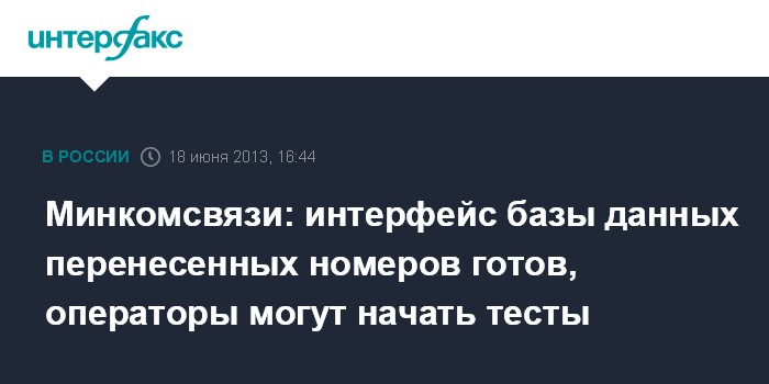 Как сообщила во вторник пресс-служба министерства, от имени замглавы Минкомсвязи Дениса Свердлова операторам связи было направлено письмо, уведомляющее о готовности интерфейса базы данных перенесенных номеров для тестирования. В Минкомсвязи не стали комментировать, кто выступил разработчиком интерфейса.