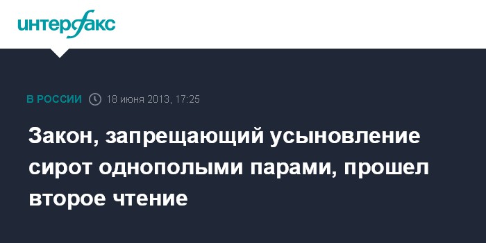 Во втором чтении в законопроект внесена поправка, устанавливающая запрет на усыновление российских сирот однополым парам, а также незамужним или неженатым иностранцам из тех государств, где такие браки разрешены.