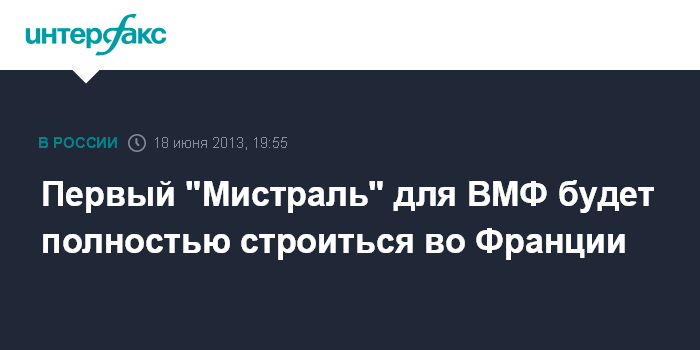 Первый "Мистраль" для ВМФ будет полностью строиться во Франции