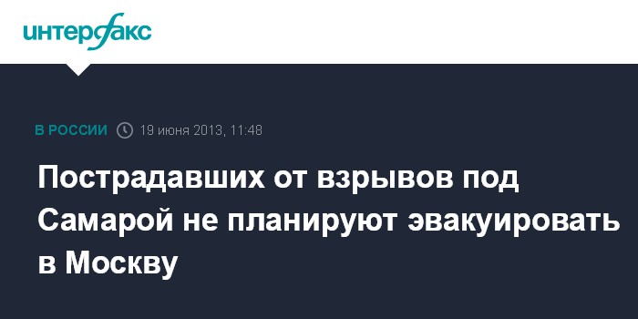 Москва.19 июня. INTERFAX.RU - Медики не видят необходимости эвакуации в федеральные больницы людей, пострадавших из-за взрывов боеприпасов в Самарской области.