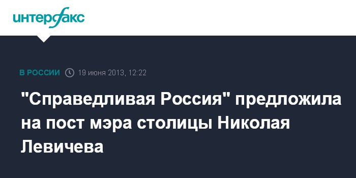 Москва. 19 июня. INTERFAX.RU - Бюро президиума центрального совета "Справедливой России" предложило кандидатуру председателя партии, вице-спикера Госдумы Николая Левичева для участия в выборах мэра Москвы.