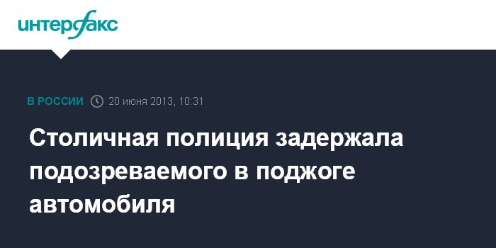 Москва. 20 июня. INTERFAX.RU - Подозреваемый в поджоге автомобиля Lexus задержан на юго-западе столицы, сообщила "Интерфаксу" сотрудник пресс-группы УВД по ЮЗАО Москвы Юлия Аносова. "В среду старшим участковым уполномоченным полиции отдела полиции по Академическому району задержан мужчина, подозреваемый в поджоге автомобиля", - сказала Аносова.