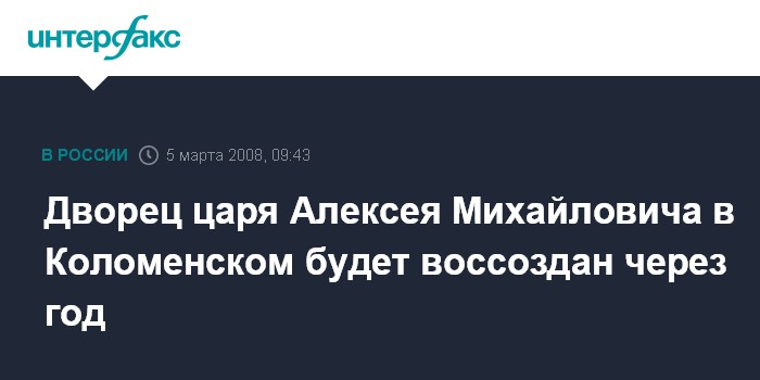 Дворец царя Алексея Михайловича в Коломенском будет воссоздан через год