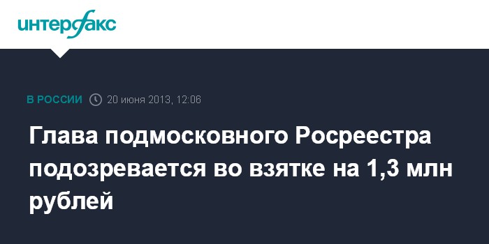 Глава подмосковного Росреестра подозревается во взятке на 1,3 млн рублей