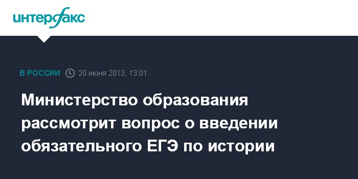 Москва.20 июня. INTERFAX.RU - Министр образования и науки РФ Дмитрий Ливанов заявил, что предложение спикера Совета Федерации Валентина Матвиенко о введении обязательного ЕГЭ по истории должно быть обсуждено с экспертами.