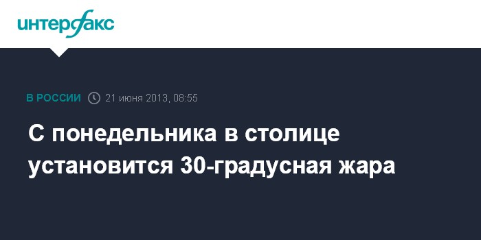 Москва. 21 июня. INTERFAX.RU - По уточненному прогнозу Гидрометеобюро Москвы и Московской области, дневные температуры в регионе с понедельника могут достигать +30 градусов.