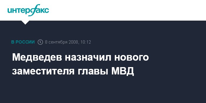 Москва. 8 сентября. INTERFAX.RU - Президент России Дмитрий Медведев своим указом назначил генерал-лейтенанта милиции Александра Смирного заместителем министра внутренних дел РФ, сообщает в пресс-служба Кремля.