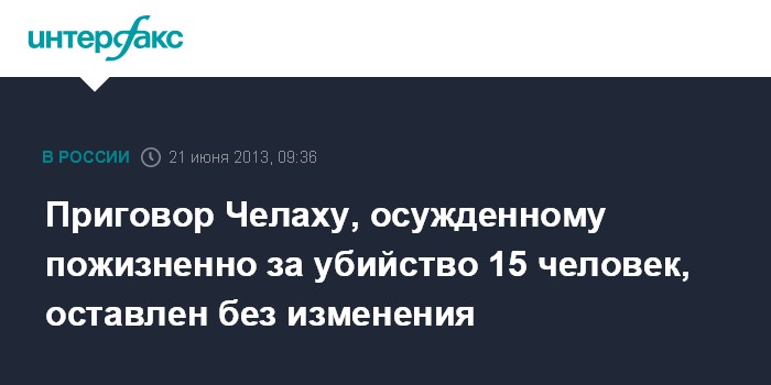 Приговор Челаху, осужденному пожизненно за убийство 15 человек, оставлен без изменения
