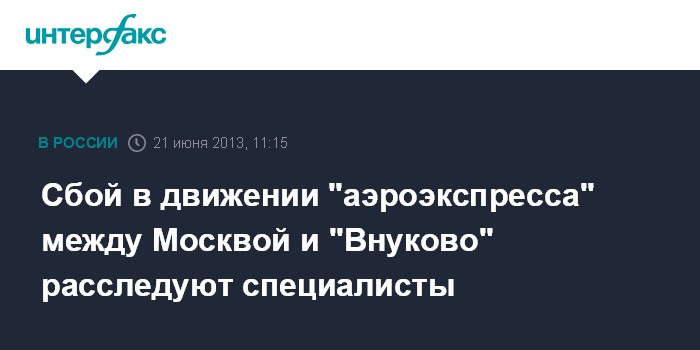 Сбой в движении "аэроэкспресса" между Москвой и "Внуково" расследуют специалисты