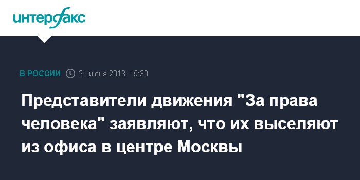 Москва. 21 июня. INTERFAX.RU - Активисты одной из старейших в России правозащитных организаций, движения "За права человека", заявили, что их пытаются выселить из офиса в центре Москвы.