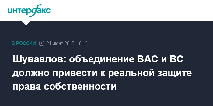 Москва. 21 июня. INTERFAX.RU - Первый вице-премьер России Игорь Шувалов заявил, что объединение Высшего арбитражного и Верховного судов должно усилить защиту прав собственников.