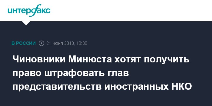 Москва. 21 июня. INTERFAX.RU - Минюст России намерен наделить представителей ведомства правом привлекать к административной ответственности руководителей российских представительств иностранных НКО.