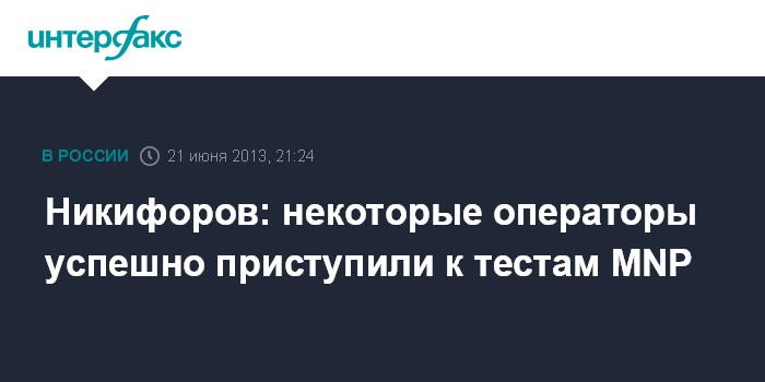 Санкт-Петербург. 21 июня. INTERFAX.RU - Некоторые мобильные операторы уже начали полноценное тестирование технических решений для запуска услуги переносимости номера (MNP), заявил глава Минкомсвязи Николай Никифоров в интервью "Интерфаксу" на ПМЭФ-2013.