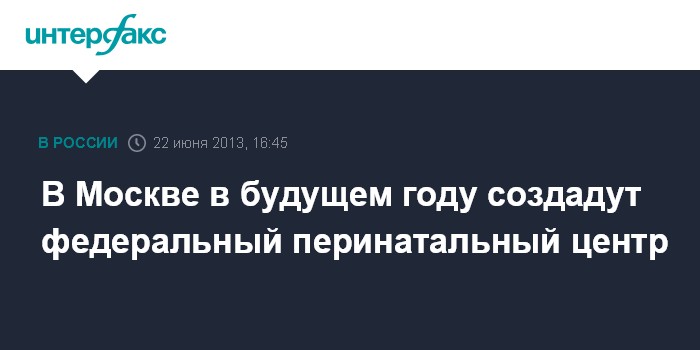 Москва. 22 июня. INTERFAX.RU - В 2014 году в Москве будет открыт крупный федеральный перинатальный центр, сообщил президент РФ Владимир Путин, выступая в субботу на Всемирном конгрессе по перинатальной медицине в российской столице. По словам президента, Центр будет создан в структуре ведущего медицинского учреждения - "Научного центра акушерства, гинекологии и перинатологии имени Академика Кулакова". В.Путин напомнил, что сейчас в стране уже работают 58 перинатальных центров.