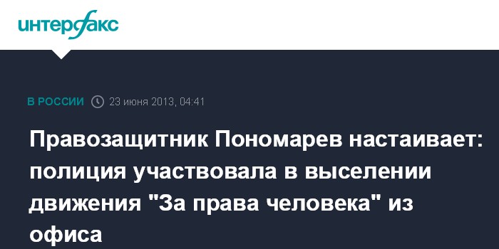 Москва. 23 июня. ИНТЕРФАКС - Сотрудники полиции принимали непосредственное участие в выселении из офиса в центре Москвы одной из старейшей в РФ правозащитной организации - движения "За права человека", заявил в воскресенье "Интерфаксу" лидер движения Лев Пономарев.