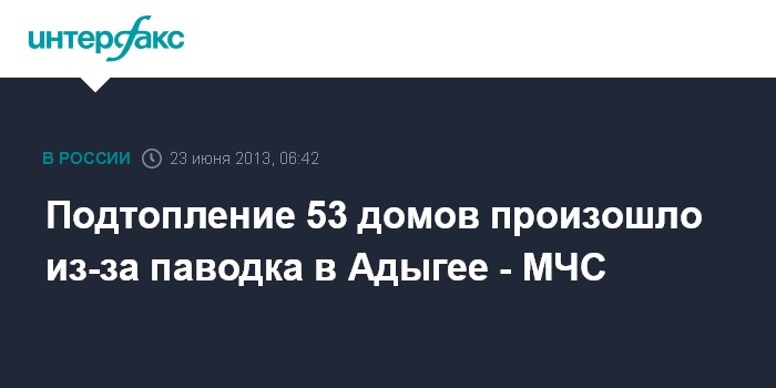 Ростов-на-Дону. 23 июня. ИНТЕРФАКС-ЮГ - Паводок стал причиной подтопления 53 жилых домов в трех населенных пунктах Майкопского района Адыгеи, сообщили агентству "Интерфакс-Юг" в Южном региональном центре МЧС РФ.
