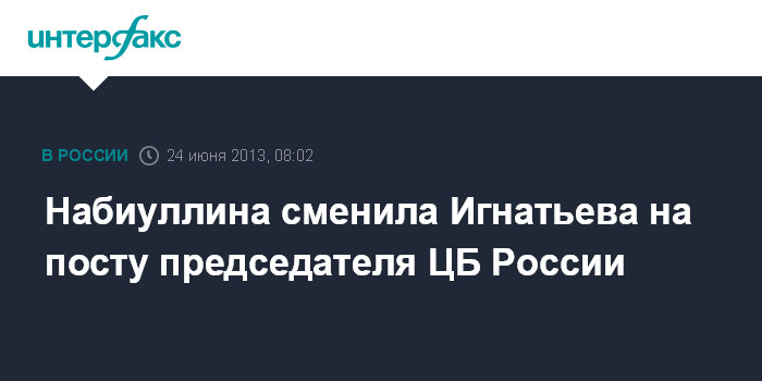 Набиуллина сменила Игнатьева на посту председателя ЦБ России