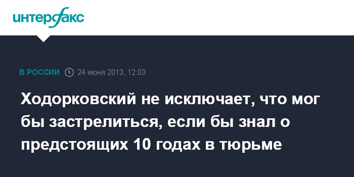 Ходорковский не исключает, что мог бы застрелиться, если бы знал о предстоящих 10 годах в тюрьме
