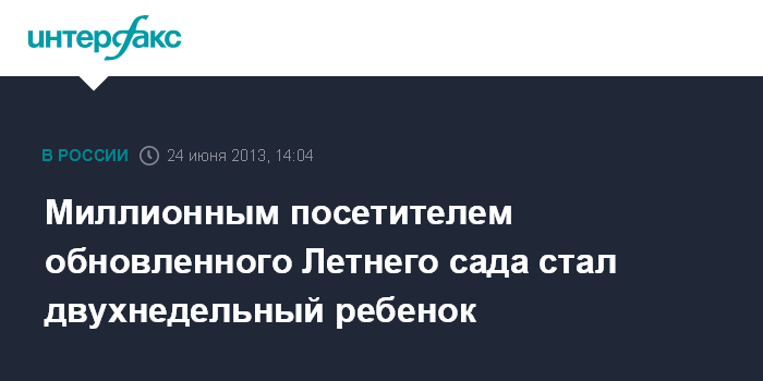 Санкт-Петербург. 24 июня. INTERFAX.RU - Летний сад в Петербурге встретил миллионного посетителя с момента открытия после реставрации. Как сообщает пресс-служба Русского музея, в воскресенье камеры слежения, установленные в Михайловском замке, зафиксировали около часу дня миллионного посетителя Летнего сада.