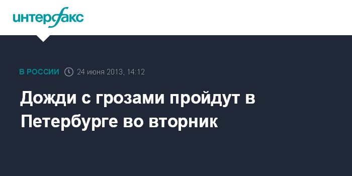 Санкт-Петербург. 24 июня. INTERFAX.RU - Главное управление МЧС Санкт-Петербурга предупреждает о грозах во вторник.