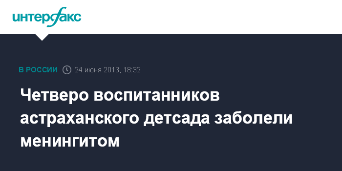 Астрахань. 24 июня. INTERFAX.RU - Диагноз "серозный менингит" поставлен четверым воспитанникам детского сада №108 Астрахани, госпитализированных в областную инфекционную больницу с подозрением на менингит, сообщила замглавного врача этого лечебного учреждения Любовь Родина.