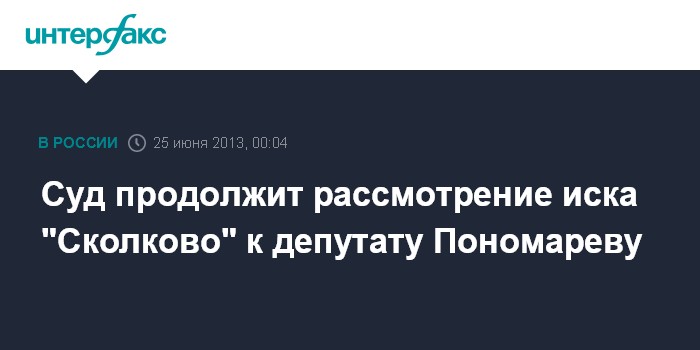 Москва. 25 июня. INTERFAX.RU - Гагаринский суд Москвы во вторник продолжит рассмотрение иска фонда "Сколково" на 9 млн рублей к депутату Илье Пономареву.