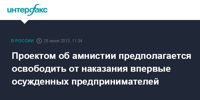 Москва. 25 июня. INTERFAX.RU - Под экономическую амнистию подпадут лица, впервые привлеченные к уголовной ответственности или впервые осужденные за преступления в сфере предпринимательской деятельности.