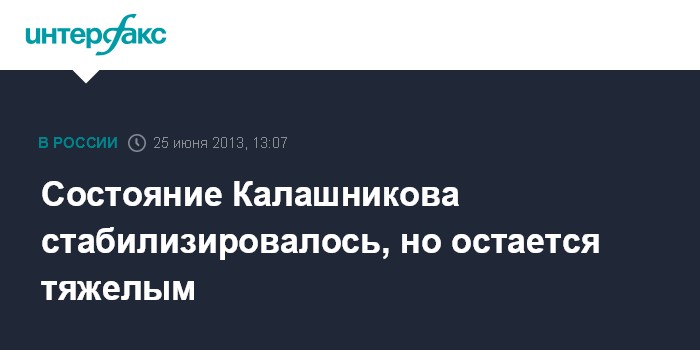 Состояние Калашникова стабилизировалось, но остается тяжелым