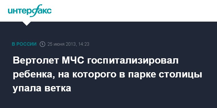 Вертолет МЧС госпитализировал ребенка, на которого в парке столицы упала ветка