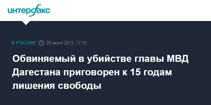 Обвиняемый в убийстве главы МВД Дагестана приговорен к 15 годам лишения свободы