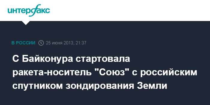 Москва. 25 июня. INTERFAX.RU - Ракета-носитель "Союз-2" с космическим аппаратом дистанционного зондирования Земли (ДЗЗ) "Ресурс-П" стартовала во вторник с Байконура с дублера "Гагаринского" старта - 31-й площадки южного космодрома, сообщил "Интерфаксу-АВН" начальник пресс-службы Федерального космического агентства (Роскосмос) Алексей Кузнецов.