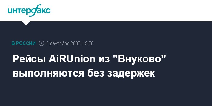 Москва. 8 сентября. INTERFAX.RU - Рейсы альянса AiRUnion, которые с воскресенья перенесены в московский аэропорт "Внуково", выполняются без задержек, говорится в сообщении аэропорта.