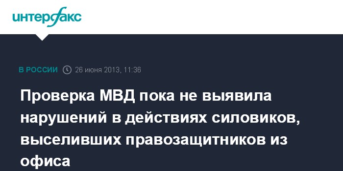 Проверка МВД пока не выявила нарушений в действиях силовиков, выселивших правозащитников из офиса