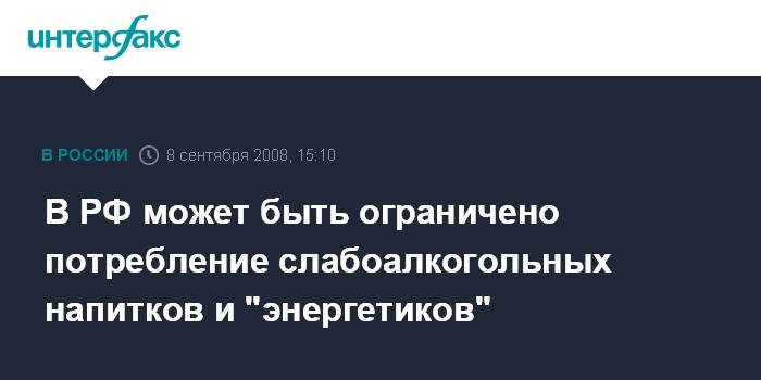 Москва. 8 сентября. INTERFAX.RU - В России могут быть ограничены торговля и потребление тонизирующих безалкогольных ("энергетиков") и слабоалкогольных напитков. Это произойдет в случае, если Госдума поддержит проект федерального закона "Об ограничениях розничной продажи и потребления (распития) тонизирующих безалкогольных и слабоалкогольных напитков", принятый законодательным собранием Краснодарского края.