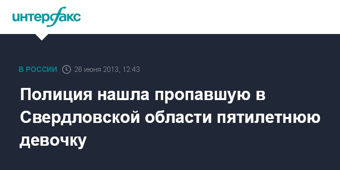 Полиция нашла пропавшую в Свердловской области пятилетнюю девочку