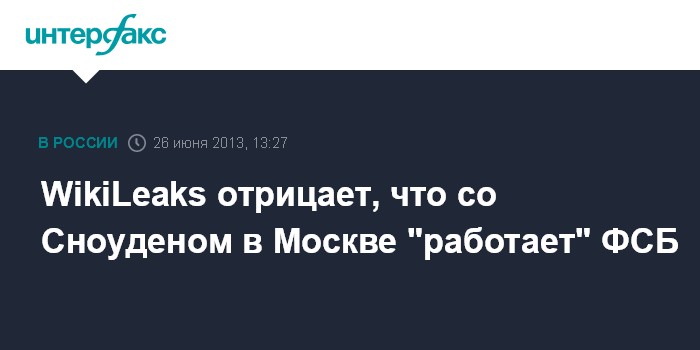Москва/Вашингтон. 26 июня. INTERFAX.RU - Российские спецслужбы не "работают" с Эдвардом Снуоденом, сообщила в среду организация WikiLeaks, которая оказывает содействие бывшему сотруднику ЦРУ и Агентства национальной безопасности США.