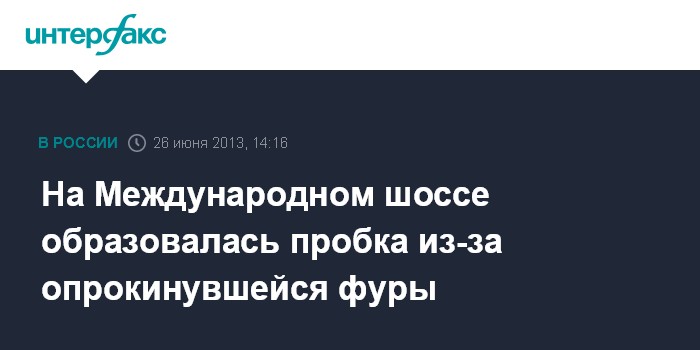 Москва. 26 июня. INTERFAX.RU - Фура опрокинулась на бок при съезде с Международного на Ленинградское шоссе, передает корреспондент "Интерфакса".