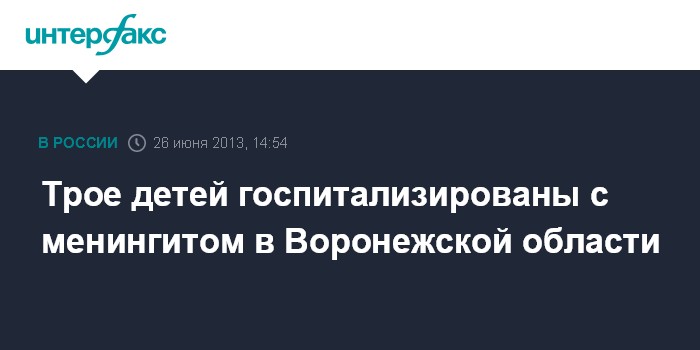 Воронеж. 26 июня. INTERFAX.RU - Диагноз "менингит" подтвердился у троих детей, проживающих в Воронежской области, сообщили "Интерфаксу" в среду в региональном управлении Роспотребнадзора.