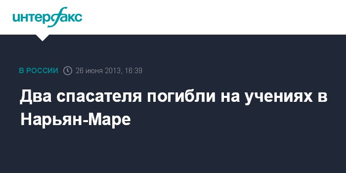 Москва. 26 июня. INTERFAX.RU - Двое сотрудника МЧС погибли во время учений в Нарьян-Маре, сообщили "Интерфаксу" в управлении информации ведомства.