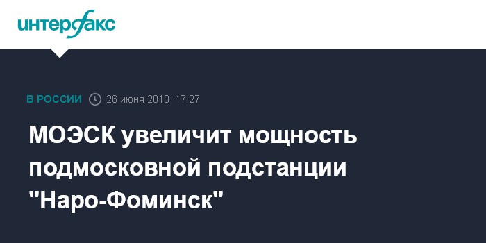 Москва. 26 июня. INTERFAX.RU - ОАО "Московская объединенная электросетевая компания" (МОЭСК) в рамках программы по реконструкции увеличит мощность подстанции "Наро-Фоминск" на 89 МВА.