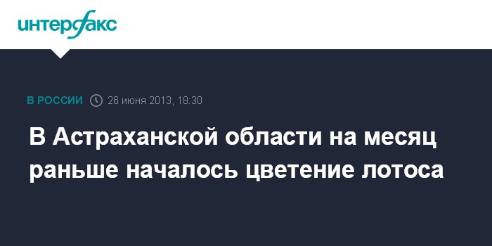 Астрахань. 26 июня. INTERFAX.RU - В Астраханской области на территории Уваровского природного памятника (Камызякский район) на месяц раньше обычного срока начал цвести лотос, сообщает служба природопользования и охраны окружающей среды области в среду.