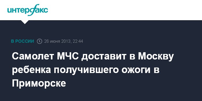 Самолет МЧС доставит в Москву ребенка получившего ожоги в Приморске
