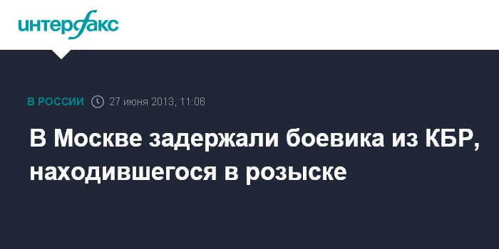 Москва. 27 июня. INTERFAX.RU - Боевика с Северного Кавказа задержали в Москве, сообщили "Интерфаксу" в пресс-центре МВД России.