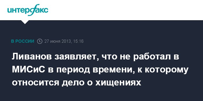 Москва. 27 июня. INTERFAX.RU - Министр образования и науки Дмитрий Ливанов заявил, что уголовное дело по факту хищения бюджетных средств в Московском институте стали и сплавов (МИСиС) было возбуждено, когда он там уже не работал.