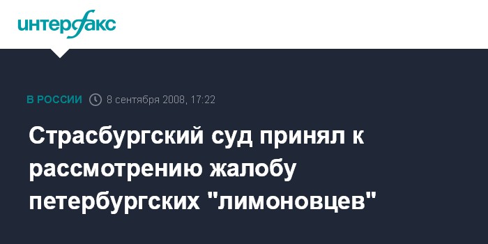 Москва. 8 сентября. INTERFAX.RU - Европейский суд по правам человека принял к рассмотрению жалобу двух петербургских "лимоновцев" Михаила Башина и Сергея Чекунова на неправомерное содержание их под арестом за акцию в Законодательном собрании Петербурга.