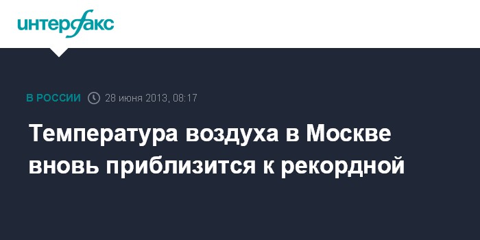 "Воздух в пятницу днем в Москве прогреется до 31-32 градусов. При этом рекордное значение для 28 июня - 32,8 градуса - было установлено в 1952 году", - сказал собеседник агентства.