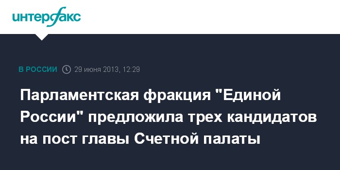 Парламентская фракция "Единой России" предложила трех кандидатов на пост главы Счетной палаты