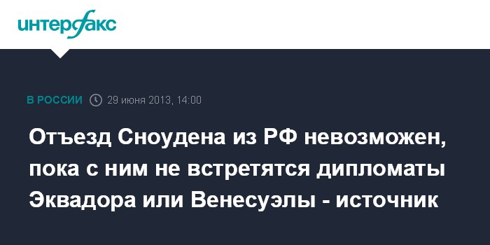Отъезд Сноудена из РФ невозможен, пока с ним не встретятся дипломаты Эквадора или Венесуэлы - источник