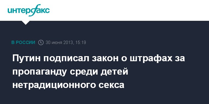 Путин подписал закон о штрафах за пропаганду среди детей нетрадиционного секса