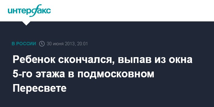 Ребенок скончался, выпав из окна 5-го этажа в подмосковном Пересвете